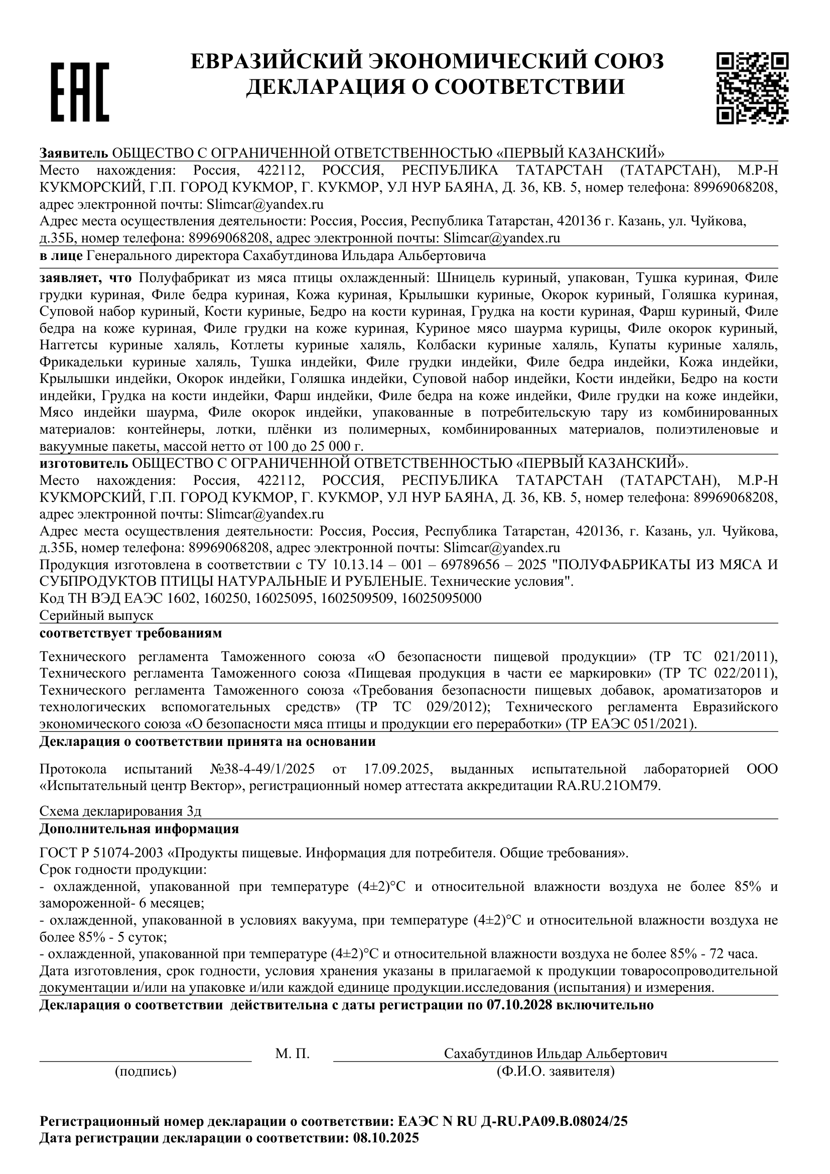 Декларация о соответствии продукции требованиям технических регламентов Евразийского экономического союза